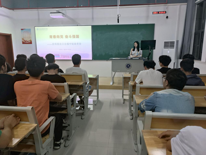(通讯员:李美莹)为全面深入贯彻落实党的二十大精神,引领学生从党的二十大精神中汲取奋进力量,树立正确的人生观、价值观,引导青年人投身科技强国建设,勇当新时代的创新主力,5月3日,自动化学院辅导员李美莹老师于实训楼301开展《青春向党,奋斗强国—在科技自立自强中绽放青春》的宣讲活动,学院全体学生共同参与。