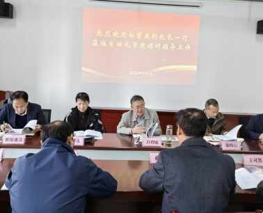 4月1日,党委常委、副校长白育庭到自动化学院调研指导工作,教务处处长徐四六、研究生处处长欧阳昌汉、社会合作与校友工作处处长鲍翠玉、招生就业处副处长饶彬、科学技术发展院副院长胡美纯以及自动化学院全体教职工参加会议,会议由自动化学院院长戴文华主持。